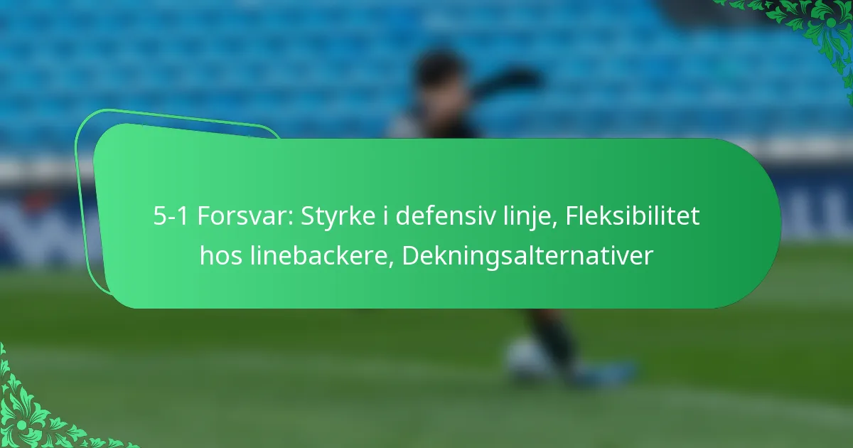 5-1-forsvaret tilbyr ulike dekningalternativer som lar lag tilpasse seg forskjellige offensive strategier. Nøkkeldekningsskjemaer inkluderer sone- og mann-dekning, hver med sine egne styrker og svakheter. Å forstå disse alternativene er avgjørende for effektivt å implementere 5-1-forsvaret i spillsituasjoner.