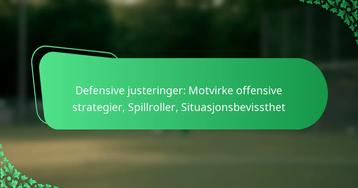 Defensive justeringer i sport er essensielle taktiske endringer som lag implementerer for å motvirke motstandernes offensive strategier. Ved å gjenkjenne og respondere på disse taktikkene, kan lag opprettholde en konkurransefordel og påvirke utfallet av kampen. Effektiv kommunikasjon, spillerroller og situasjonsbevissthet er viktige komponenter for å gjennomføre disse justeringene på en vellykket måte.
