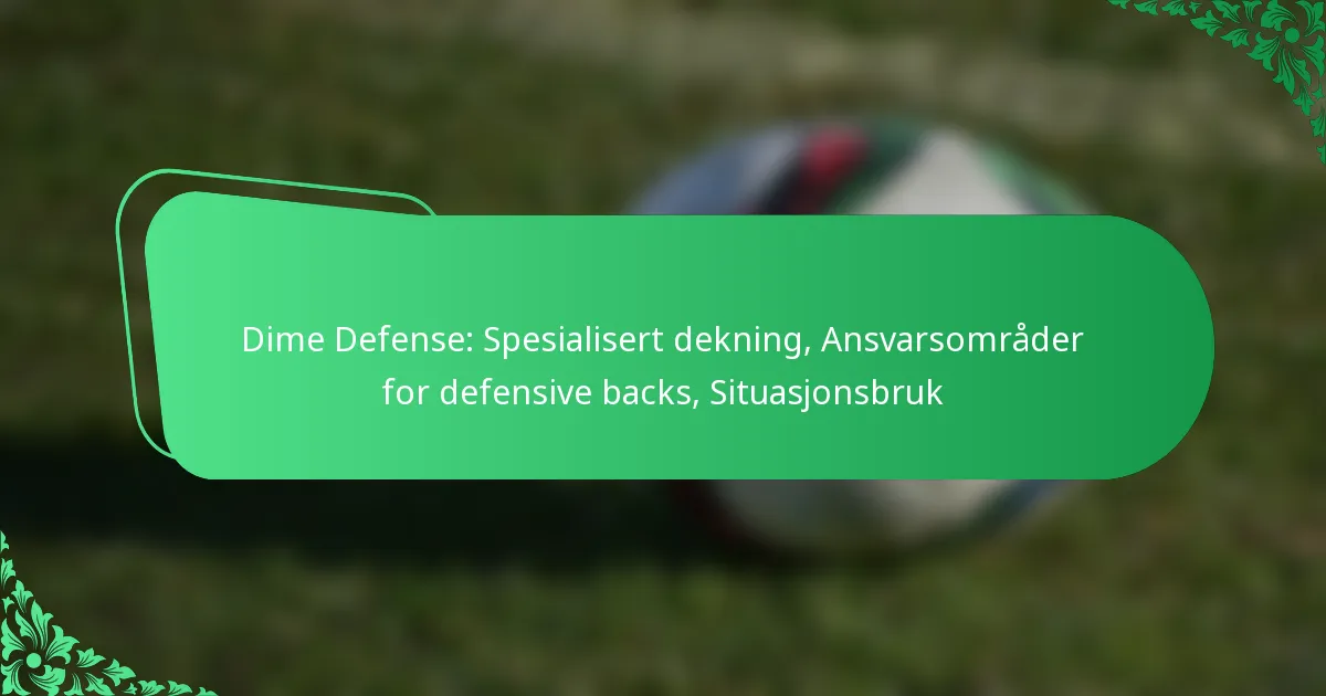 Dime Defense er en spesialisert formasjon i amerikansk fotball som benytter seks defensive backs for effektivt å motvirke pasningsangrep. Denne strategien forbedrer dekningen mot flere mottakere, noe som gjør den spesielt nyttig i åpenbare pasningssituasjoner. Ved å bruke allsidige dekkningsalternativer lar Dime Defense lag tilpasse seg ulike offensive oppsett og maksimere sine defensive evner.