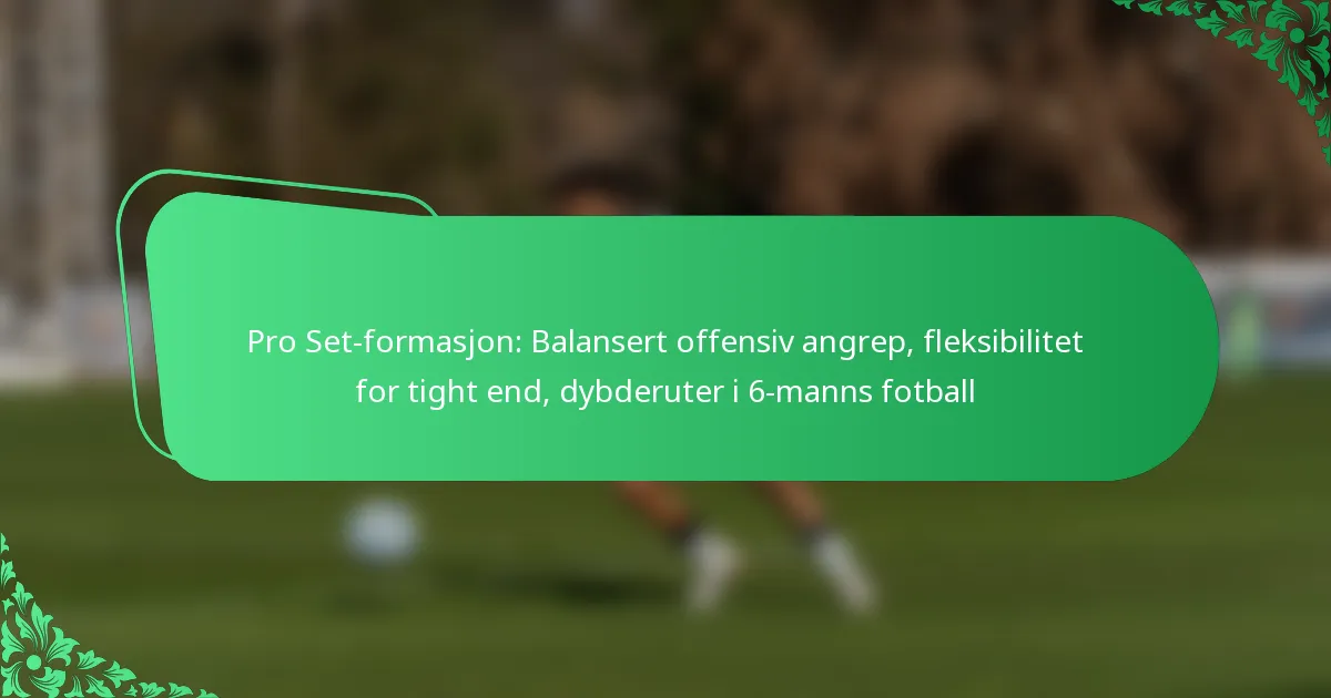 Pro Set-formasjonen i 6-manns fotball er en effektiv offensiv strategi som vektlegger balanse ved å inkludere to running backs og to wide receivers. Denne oppstillingen forbedrer ikke bare fleksibiliteten i spillkallingen, men gir også dybde i offensive ruter, noe som gjør det lettere å tilpasse seg defensive ordninger. I tillegg gir inkluderingen av tight ends allsidighet, som gjør det mulig for lag å utføre både blokkering og mottak effektivt.