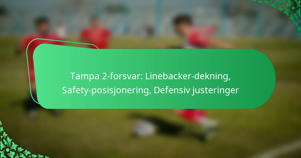 Lag kan gjøre defensive justeringer i Tampa 2 ved å analysere offensive formasjoner og tilpasse sine linebacker- og safety-oppstillinger deretter. Effektiv kommunikasjon og justeringer i spillet er avgjørende for å motvirke offensive strategier og opprettholde defensiv integritet.